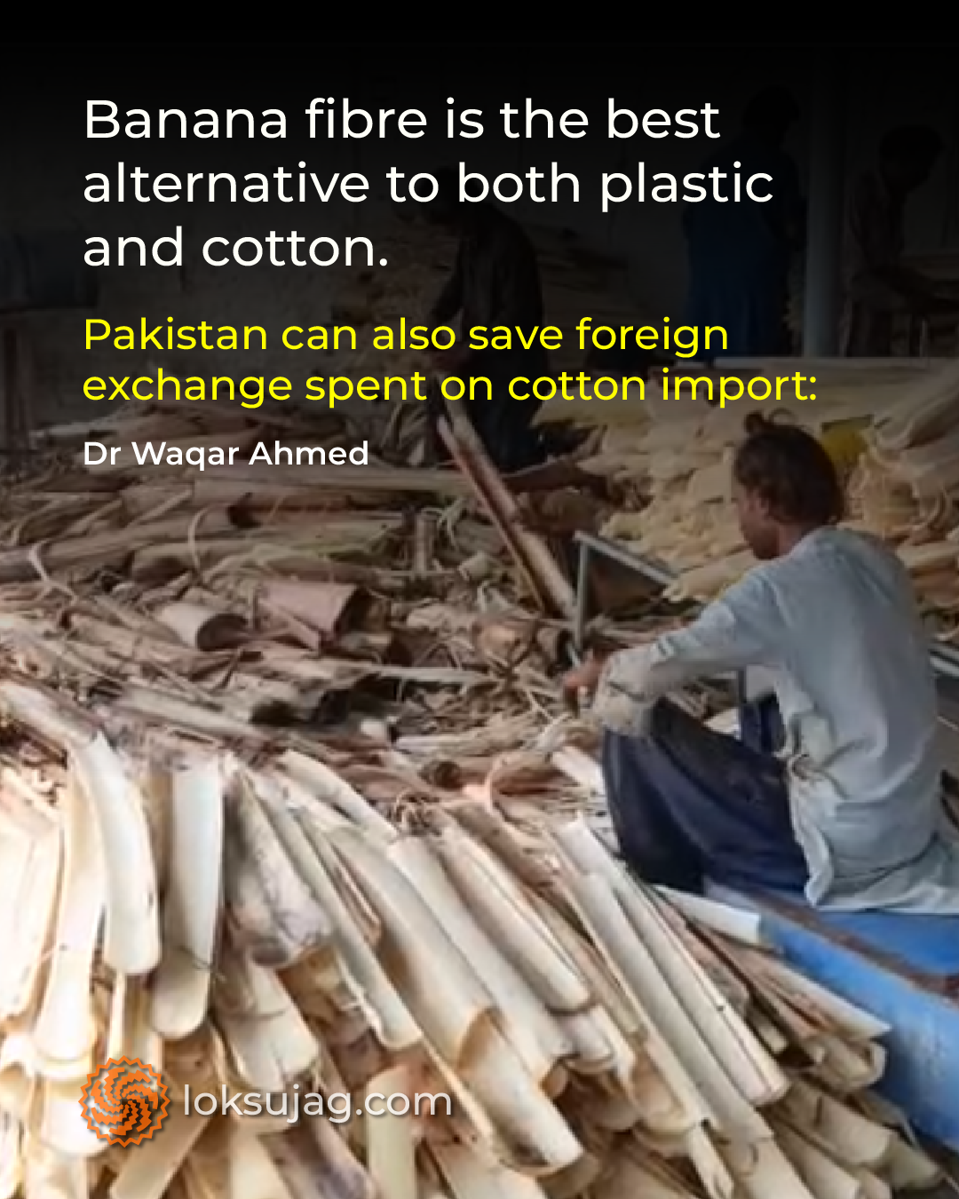 Experts say that banana fibre is the best alternative to both plastic and cotton, which can save Pakistan valuable foreign exchange spent on cotton imports. It should be noted that the country has seen a major decline in the area under cotton cultivation and production over the past decade. Cotton production, which was 14 million bales 10 years ago, has now decreased to about 6 million.