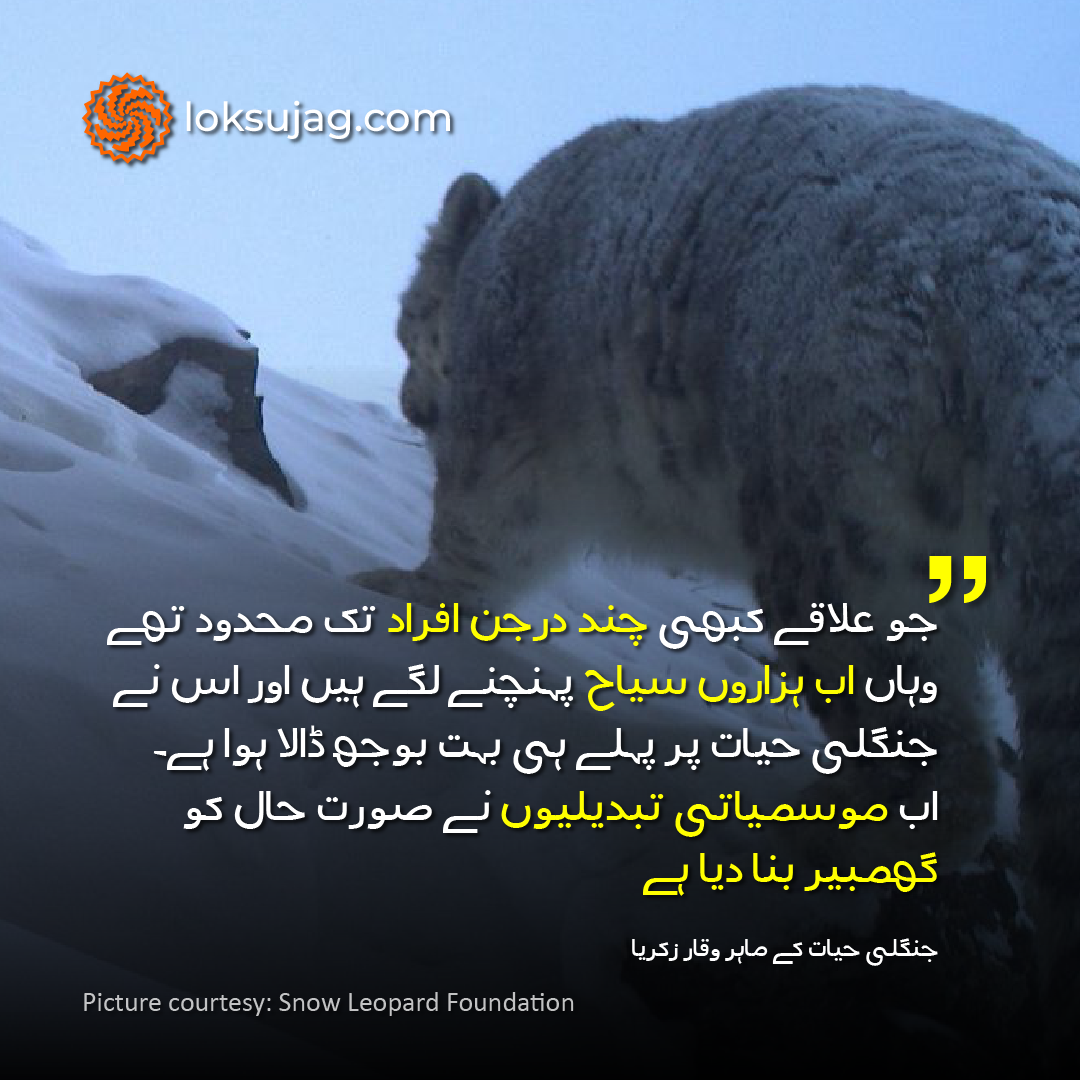 جنگلی حیات کے ماہر وقار زکریا کہتے ہیں کہ ماحولیاتی دباؤ صرف درجہ حرارت کی تبدیلی تک محدود نہیں۔ سڑکوں کی تعمیر، انفراسٹرکچر کی توسیع اور شہری آبادی کے پھیلاؤ نے جنگلی ہیبٹیٹس کو تیزی سے سکڑنے پر مجبور کر دیا ہے۔ "جو علاقے کبھی چند درجن افراد تک محدود تھے، وہاں اب ہزاروں سیاح پہنچنے لگے ہیں اور اس بڑھتی ہوئی آمدورفت نے ماحول پر پہلے ہی بہت بوجھ ڈالا ہوا ہے۔"