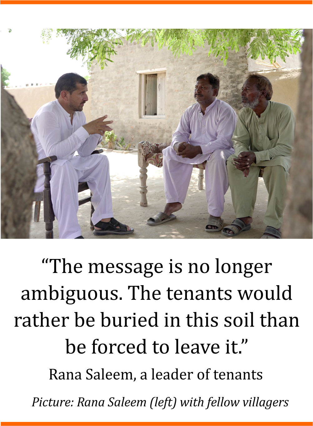 Pointing at the crowd, Rana Saleem said with poise. “The message is no longer ambiguous. The tenants would rather be buried in this soil than be forced to leave it.”
