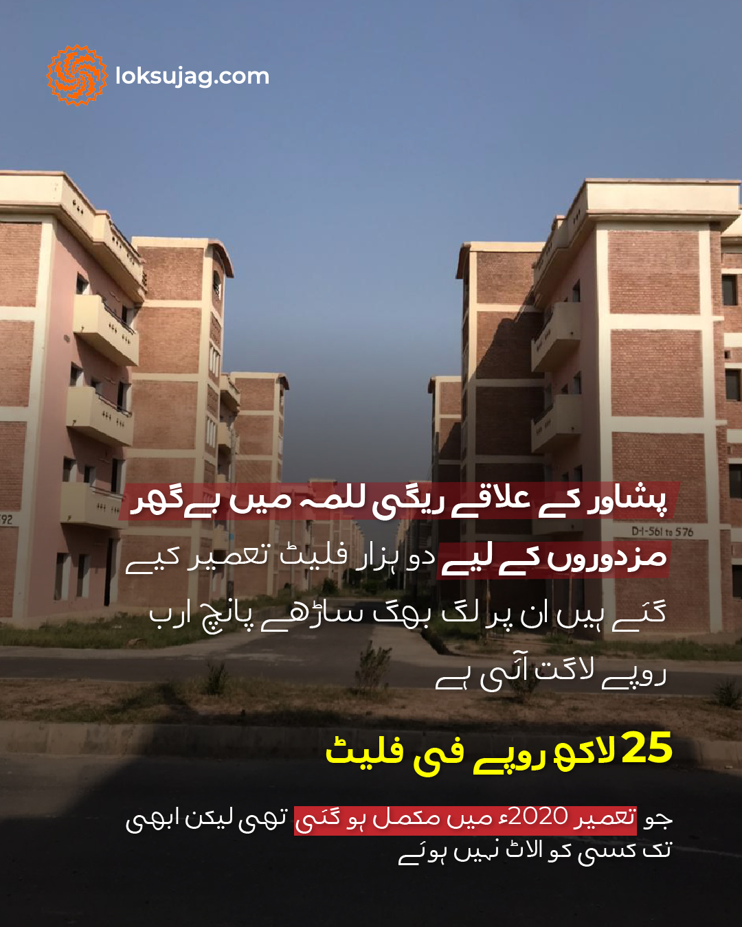 پشاور میں بے گھر مزدوروں کے لیے تعمیر کیے گئے دو ہزار فلیٹس مکمل ہونے کے پانچ سال بعد بھی محنت کشوں کے سپرد نہیں کیے جا سکے۔