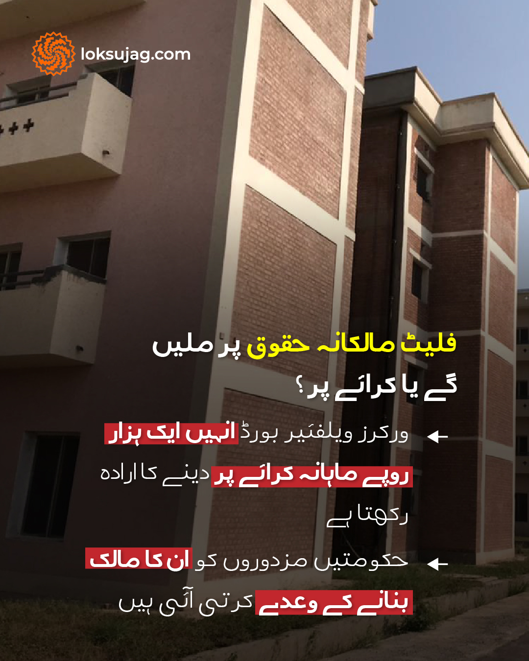 عبدالسعید خان انڈسٹریل ورکرز یونین کے صدر اور یونائیٹڈ ورکرز فیڈریشن کے صوبائی ڈپٹی جنرل سیکٹریٹری ہیں۔ انہوں نے لوک سجاگ کو بتایا کہ پہلے (2022ء میں) فلیٹس مالکانہ حقوق پر اور پچھلے سال پھر کرائے پر دینے کے لیے مزدوروں سے درخواستیں طلب کی گئیں۔ ایک ہزار سے زائد درخواستیں جمع ہوئیں (اتنی کم درخواستیں کیوں؟ آگے پڑھیے) مگر بورڈ نے ابھی تک اس معاملے کو لٹکا رکھا ہے۔