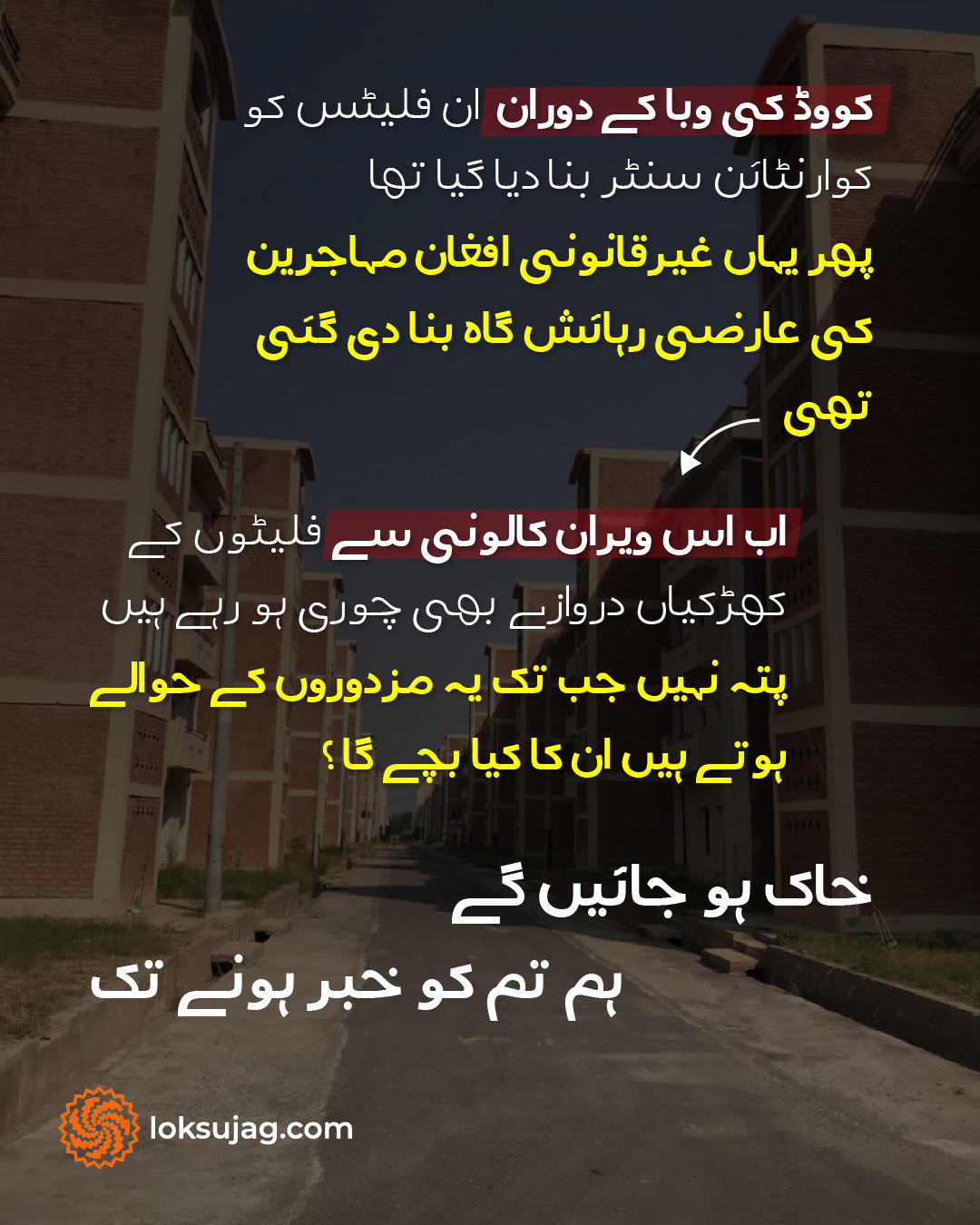 وہ بتاتے ہیں کہ کچھ تاخیر تو فنڈز کے اجرا میں تعطل کے باعث ہوئی، پھر اپریل 2020ء میں ضلعی انتظامیہ نے یہاں 592 فلیٹس میں کورنٹائین سنٹرز بنا دیے۔ یہ سلسلہ ایک سال تک چلتا رہا جس کی وجہ سے تعمیراتی کام روکنا پڑا تھا۔