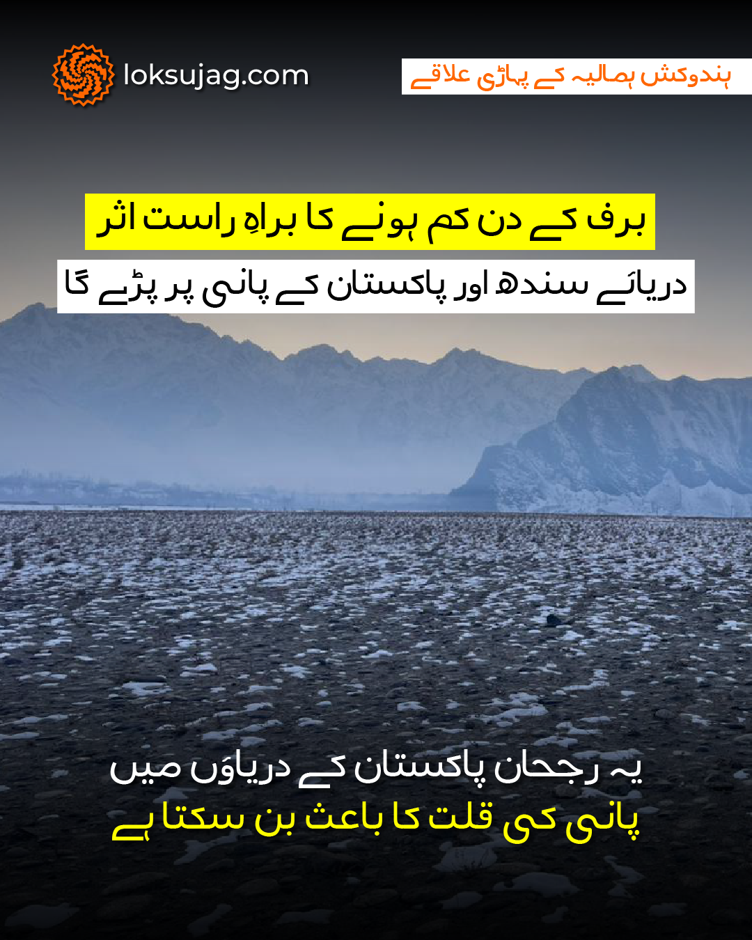 رپورٹ کے مطابق ہندوکش اور ہمالیہ کے خطے میں برف اب پہلے کے مقابلے میں نہ صرف کم مقدار میں پڑ رہی ہے بلکہ زیادہ دیر تک زمین پر ٹھہرتی بھی نہیں۔ اعداد و شمار بتاتے ہیں کہ گزشتہ دو دہائیوں کے مقابلے میں برف جمنے کا دورانیہ تقریباً 23.6 فیصد کم ہو چکا ہے، جو پچھلے 23 برسوں کی سب سے کم سطح ہے۔ گلگت بلتستان کے مرکزی شہر سکردو میں بھی صورتحال مختلف نہیں۔