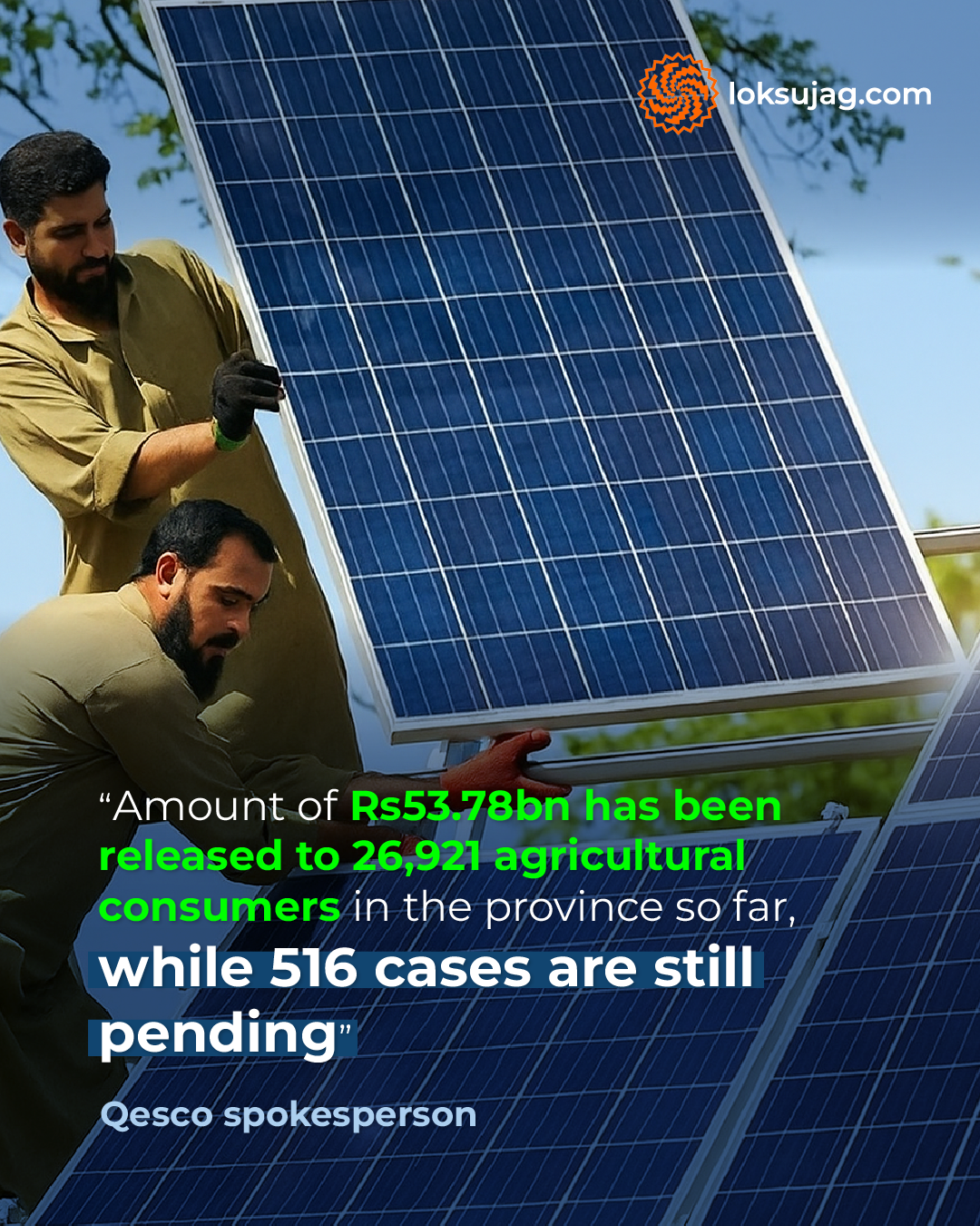 According to a Qesco spokesperson, a total of Rs53.78bn has been released to 26,921 agricultural consumers in the province so far, while 516 cases are still pending.