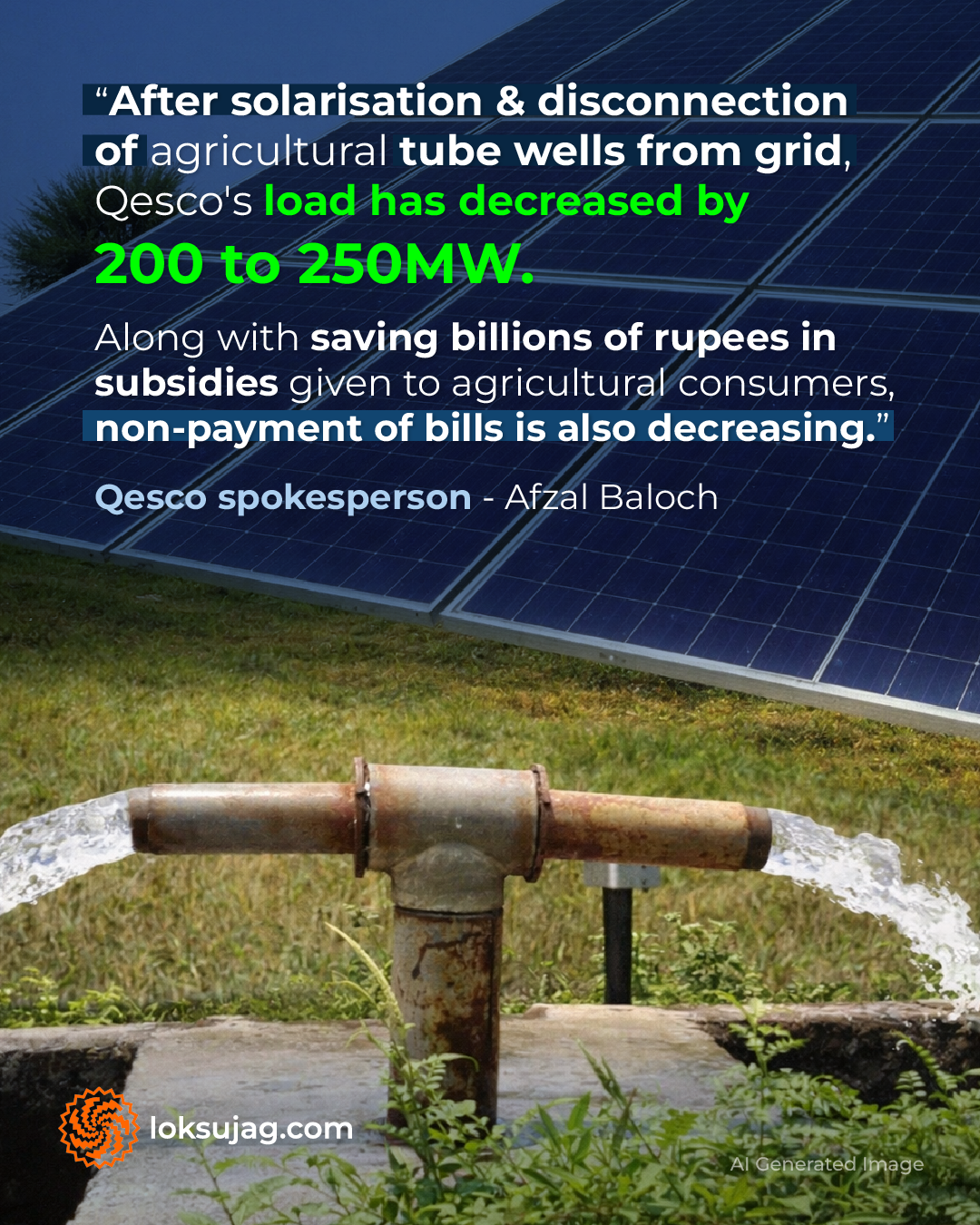 He claims that after solarisation and disconnection of agricultural tube wells from the grid, Qesco’s load has decreased by 200 to 250 MW. Along with saving billions of rupees in subsidies given to agricultural consumers, non-payment of bills is also significantly decreasing.