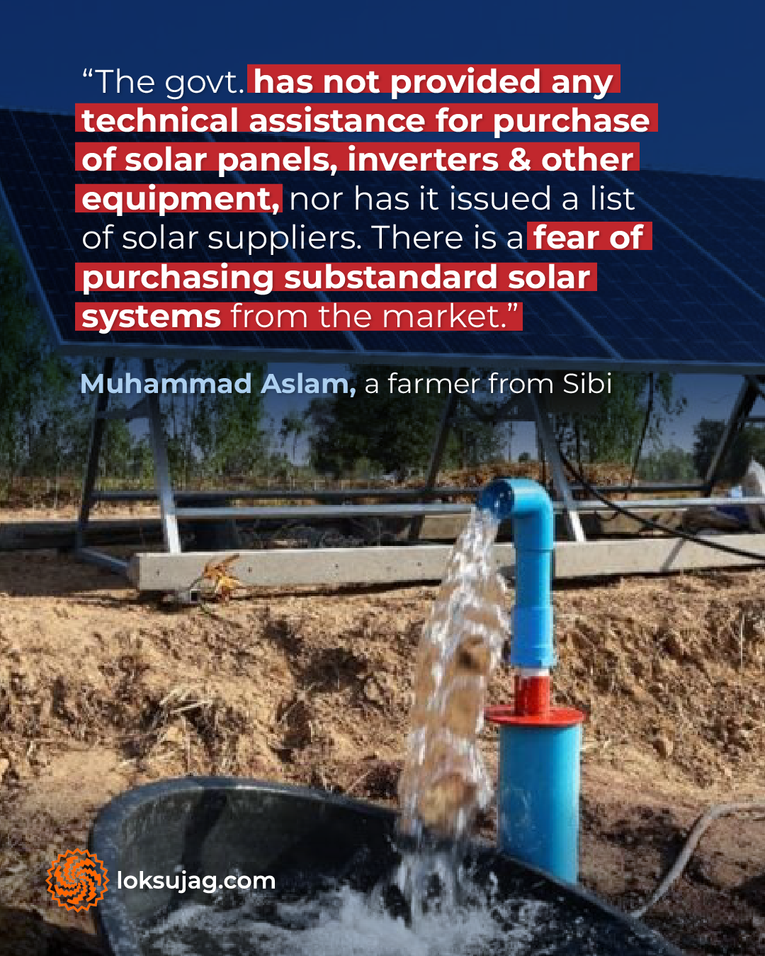 Farmer Muhammad Aslam of Lehri in Sibi district also received a government grant a few months ago but has not yet converted his tube well to solar. He is still using grid electricity and is paying heavy bills.