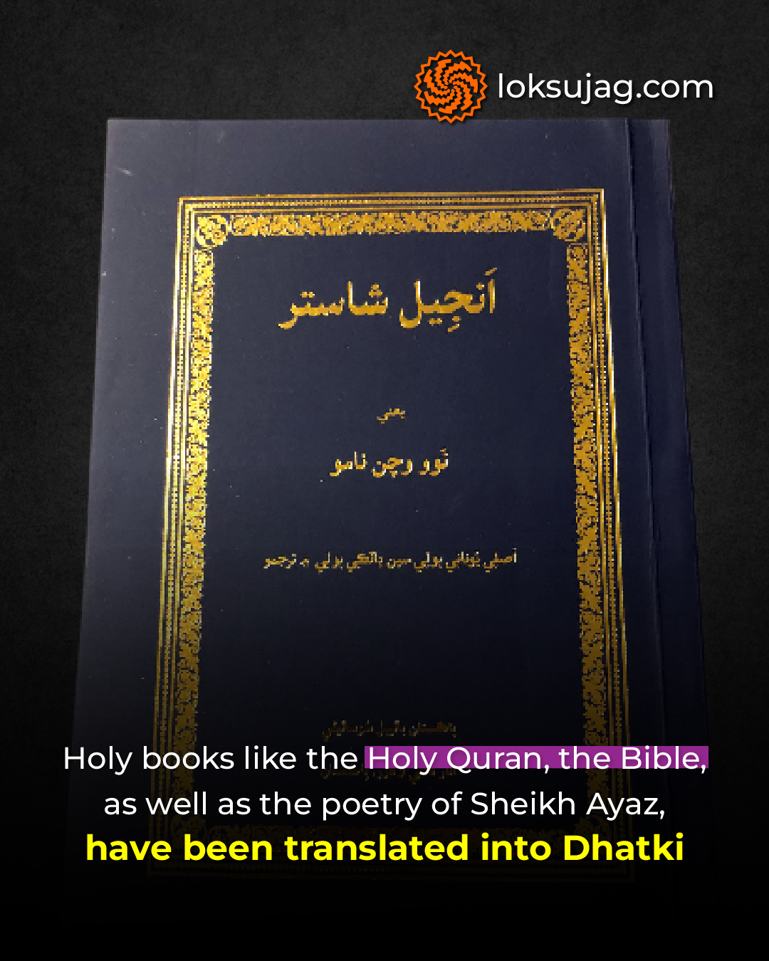 There is also a translation of the Holy Quran in Dhatki by Haji Muhammad Siddiq Rahimoon. The first story was written by Haji Muhammad Kambhar and Shah Latif’s poetry (Shah Jo Risalo) was translated into this language by the famous Sindhi writer Luqman Laghari, also known as Ustad Laghari. A Dhatki translation of Sheikh Ayaz’s poetry has also been published.