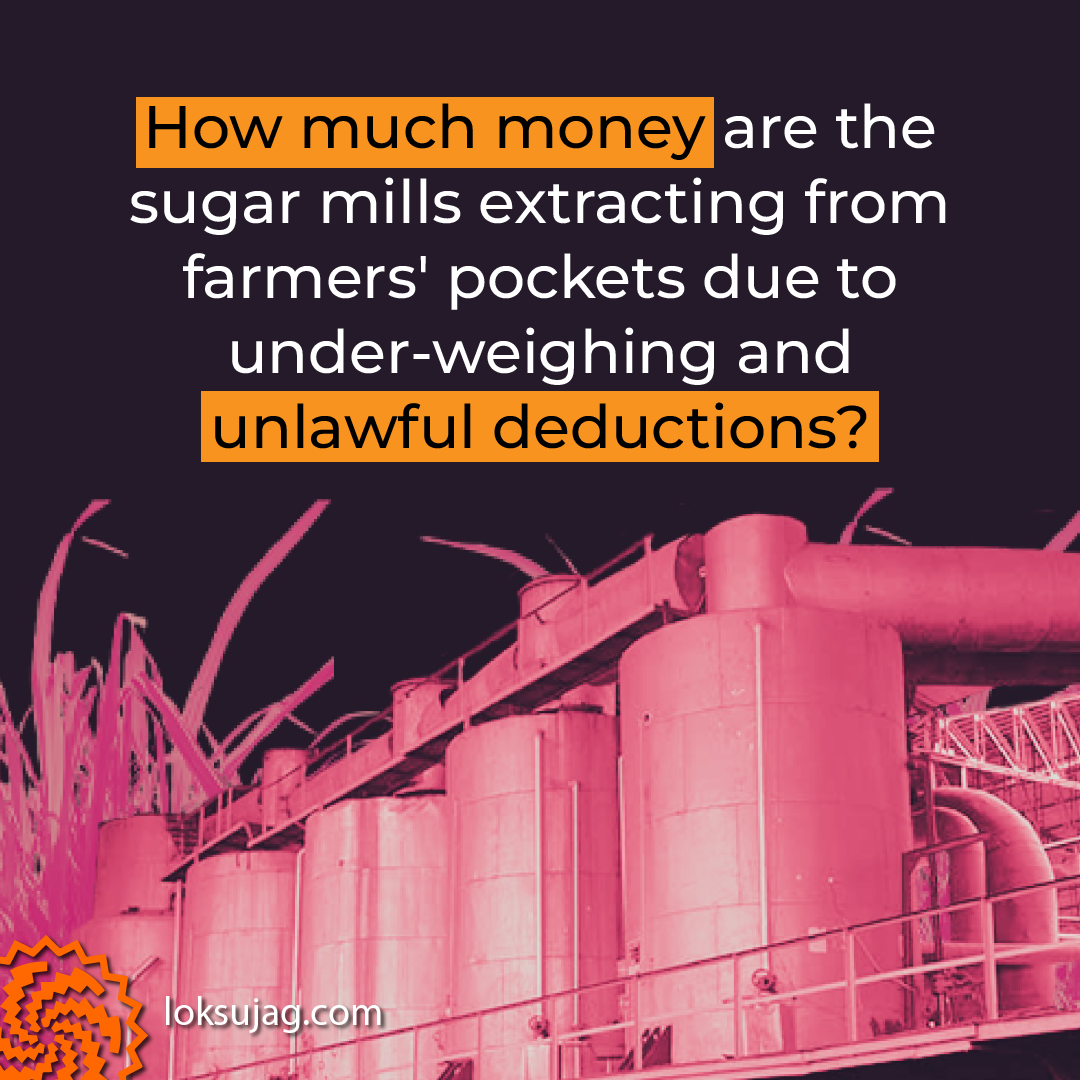 Sugar mills are cheating farmers by weighing sugarcane 10 to 15 percent less, resulting in embezzlement of Rs83bn to 125bn by the sugar mills and their agents.