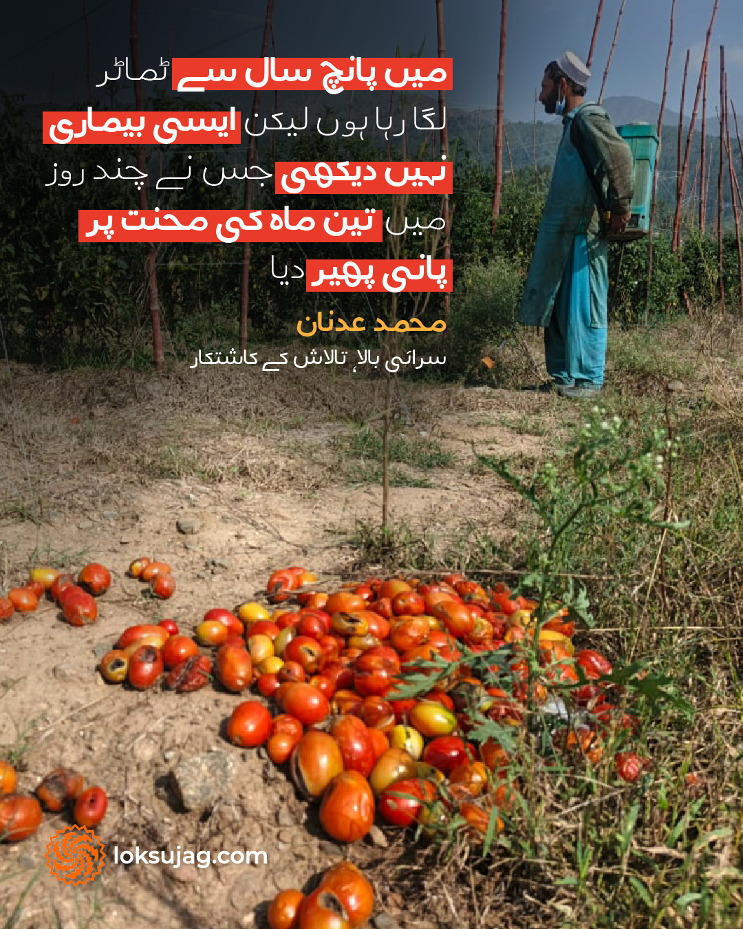 "میں پانچ سال سے ٹماٹر لگا رہا ہوں مگر ایسی بیماری کبھی نہیں دیکھی جس نے چند دنوں میں تین ماہ کی محنت پر پانی پھیر دیا ہے۔ اب تو خرچہ پورا ہونے کی بھی امید نہیں۔"