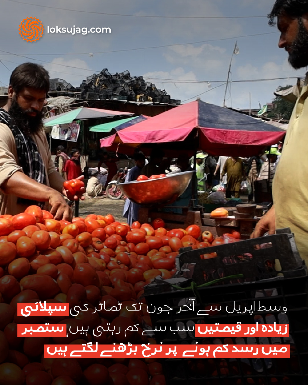 ٹماٹر کے نرخوں میں اتار چڑھاؤ کا سبب عموماً غیرمستقل سپلائی ہی بنتی ہے۔ وسط اپریل سے جون کے آخر تک ٹماٹر کی سپلائی عام طور پر طلب سے زیادہ ہوتی ہے اور اسی عرصہ میں قیمتیں سب سے کم رہتی ہیں۔ اس کے برعکس ستمبر، اکتوبر اور نومبر میں سپلائی کم ہو جاتی ہے اور قیمتیں بڑھنے لگتی ہیں۔