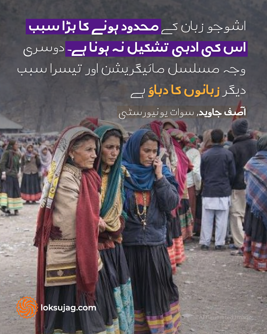 سوات یونیورسٹی میں انگریزی کے استاد آصف جاوید سمجھتے ہیں کہ اشوجو زبان کے محدود ہونے کا بڑا سبب اس کی ادبی تشکیل نہ ہونا ہے۔ دوسری وجہ مسلسل مائیگریشن اور تیسرا سبب دیگر زبانوں کا دباؤ ہے۔