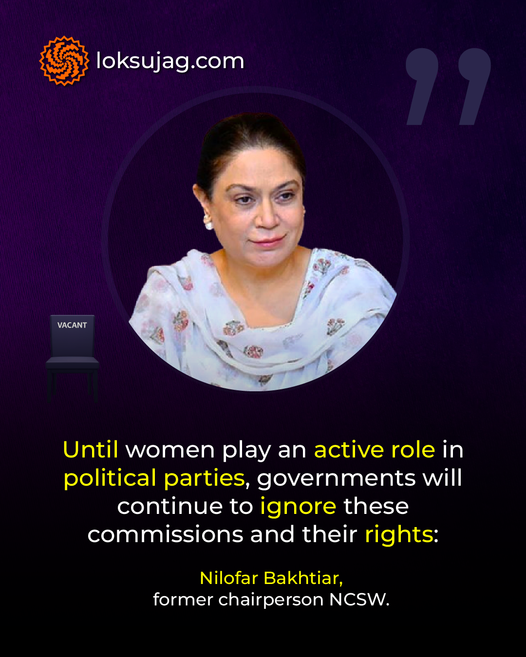 “Until women play an active role in political parties, the government will continue to ignore these commissions and their rights,” she stresses.